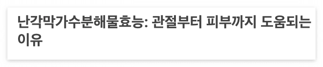 난각막가수분해물효능 중 가장 대표적인 것은 관절 건강입니다. 난각막가수분해물 속 히알루론산은 관절 내 윤활 역할을 하며, 콜라겐과 콘드로이틴은 연골을 보호하고 관절 마모를 줄여줍니다. 임상 연구에서도 난각막가수분해물을 꾸준히 섭취했을 때 관절 통증이 감소하고 움직임이 개선되었다는 결과가 확인되었습니다.