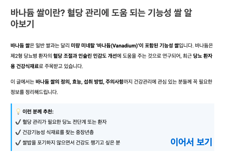 최고의 건강과 행복은 내 몸에 맞는 선택에서 온다는 것을 잊지 마세요! 바나듐쌀을 통해 건강한 한 끼와 행복한 하루를 만들어가시길 응원합니다!