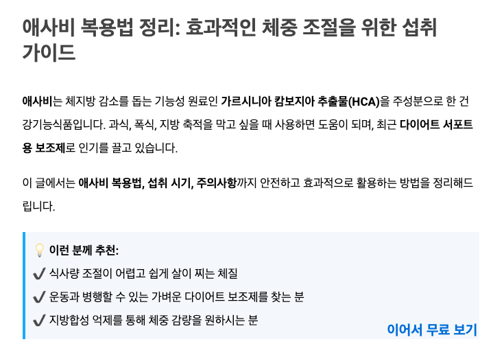 이제 직접 시작해 보는 건 어떠신가요? 오늘부터 애사비 복용법을 실천하며 건강하고 활기찬 변화를 경험해 보세요. 작은 변화가 큰 행복으로 연결될 것입니다!