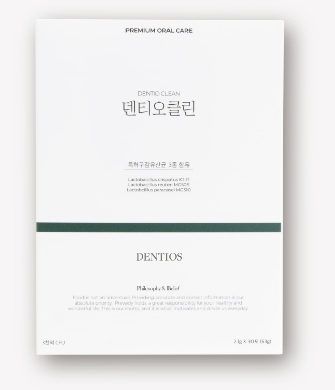 특히 입냄새 개선, 잇몸 염증 완화 등의 효과를 기대할 수 있다고 해요. 덴티오클린은 전 연령층이 섭취 가능하며 꾸준히 섭취하면 잇몸 유산균 효과로 인해 구강 내 유익균이 자리를 잡는 데 도움을 줄 수 있습니다.