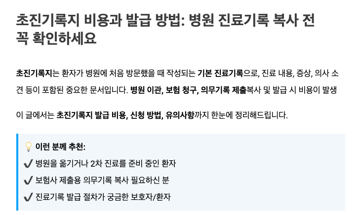 병원을 방문할 때 초진과 재진의 차이를 이해하면 더욱 효율적으로 의료 서비스를 이용할 수 있습니다. 또한, 초진기록지라는 중요한 문서의 발급 비용과 절차를 숙지하고, 이를 활용해 예상치 못한 상황에서 적극적으로 대처해보세요. 이제 준비된 환자로서 진료를 효율적으로 활용하세요!
